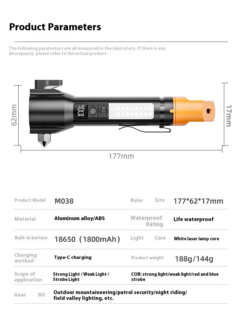 Color: M037 flashlight [1800mAh sidelight red and blue flash], M038 safety hammer [1800mAh sidelight red and blue flash]