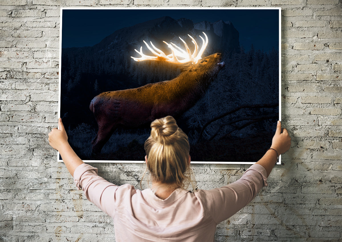 Entdecken Sie die Magie des Untersbergs mit unserem exklusiven Panoramabild auf Acrylglas. Der majestätische Hirsch mit seinem glühend leuchtenden Geweih verleiht diesem Bild eine kraftvolle und mystische Stimmung, die Sie in eine andere Welt entführt. Das Foto wurde während Vollmond in der Nähe der Zehnkaser Alm aufgenommen und fängt die Schönheit und Ruhe dieser unberührten Naturkulisse ein.